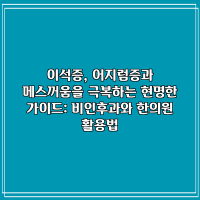 이석증, 어지럼증과 메스꺼움을 극복하는 현명한 가이드: 비인후과와 한의원 활용법
