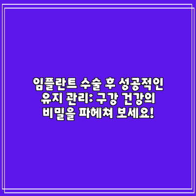 임플란트 수술 후 성공적인 유지 관리: 구강 건강의 비밀을 파헤쳐 보세요!