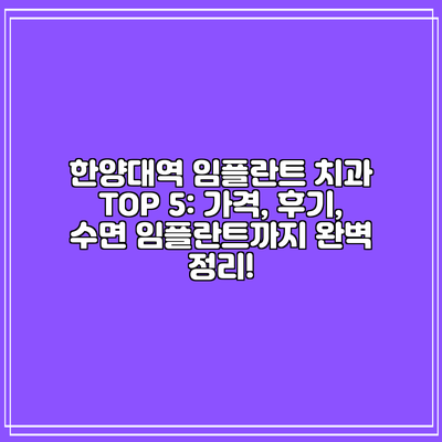 한양대역 임플란트 치과 TOP 5: 가격, 후기, 수면 임플란트까지 완벽 정리!